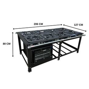 O Fogão Industrial de Centro 8 Bocas Duplas Cefaz Linha Gold Baixa Pressão Aço Carbono com Forno 100 Litros Tampa de Vidro C-CFZG-159+FRG-22 é um equipamento completo, ideal para restaurantes, lanchonetes, escolas e diversos tipos de comércio que buscam qualidade e eficiência. O fogão industrial é projetado para agilizar e facilitar o serviço na cozinha, oferecendo um visual elegante e alta performance. Sua mesa estampada evita o acúmulo de resíduos, garantindo máxima higiene. Com um tubo de alimentação de gás de 1 1/4 polegada, proporciona excelente vazão de gás para os queimadores. As grelhas de ferro fundido 40x40 cm suportam panelas e tachos pesados, permitindo um cozimento rápido e eficaz, mesmo em longas horas de funcionamento e altas temperaturas. A estrutura do fogão é feita em aço carbono pintado, oferecendo durabilidade e resistência.