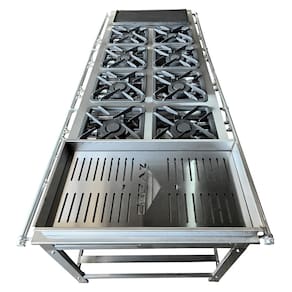 Fabricado em aço inox 304 de 1,0mm, o fogão garante maior durabilidade e resistência contra corrosão, além de um acabamento sofisticado. Sua mesa estampada impede o acúmulo de sujeira, facilitando a higienização e garantindo um ambiente mais seguro e higiênico. O tubo de alimentação de gás de 1" 1/4" polegada proporciona excelente vazão para os queimadores, garantindo maior eficiência e controle na cocção.