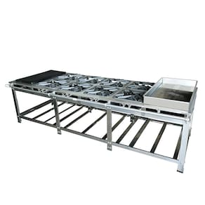 Com 8 queimadores duplos e uma chapa bifeteira de 90x40, ele é perfeito para quem precisa de agilidade e eficiência no dia a dia. O Banho Maria incluso é ideal para manter alimentos aquecidos, e o registro regulador de baixa pressão da marca Apis garante segurança no controle do gás. O fogão também é totalmente desmontável, facilitando o transporte e o armazenamento.