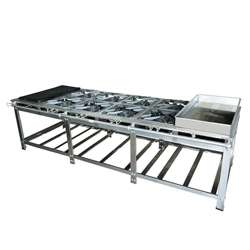 - Queimadores: 8 queimadores duplos de 175mm cada