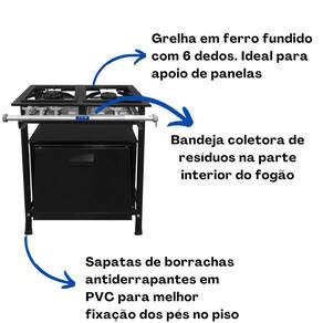 Acompanha grelhas internas, para melhor utilização calorifica da queima do gás, tornando-o mais econômico e eficaz
