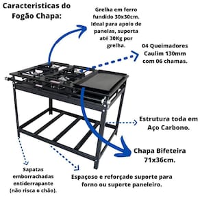 Conheça melhor o Fogão Industrial 4 Bocas Alta Pressão com Chapa Bifeteira P4 da Itafaz