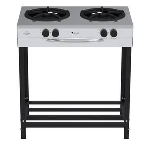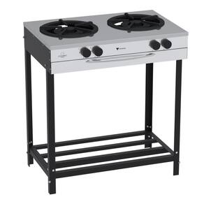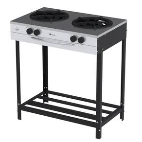 Características: Fogão Industrial FI 230-2 Gourmet, Baixa Pressão, 1 queimador duplos de 150mm e 1 Queimador de 120mm, Trempes Esmaltada diâmetro 30 cm, Queimadores e Espalhadores em Ferro Fundido pintados de Preto, Painel Pintado em Preto, Mesa em Aço Inox, Manípulos Removíveis, Bandeja Coletora de Resíduos, Corpo Desmontável facilitado o Transporte.
