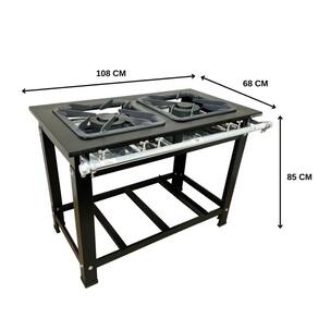 Fogão Industrial Gold 2 Bocas Duplas Baixa Pressão CefazFogão Industrial Cefaz Linha Gold, foi fabricado para atender restaurantes, lanchonetes, escolas, casa ou qualquer tipo de comércio que necessite de um produto de boa qualidade , sendo ideal para seu negócio. O fogão Industrial auxilia e agiliza o seu serviço na cozinha, além de ter um visual bonito e ser um fogão de alta qualidade! No Fogão Cefaz Linha Gold, para não acumular resíduos em suas emendas, optamos por sua mesa ser toda estampada, mantendo a máxima higiene no produto. Seu Tubo de Alimentação de gás é de 1” 1/4" polegada, tendo uma boa vazão de gás para os queimadores. A Grelha 40x40 além de ter o visual e a cor mais elegante, é feita de ferro fundido para suportar panelas e tachos, possibilitando cozinhar mais rápido, além de suportar longas horas de funcionamento e altas temperaturas, mantendo o Perfil 10. Fogão Cefaz Linha Gold é produzido em aço carbono de 1,2mm (CHAPA 18) com acabamento em pintura a pó eletrostática Informações técnicas do fogão Modelo: CFZG-154 Funcionamento a gás GLP baixa pressão Estrutura em aço carbono com pintura a pó eletrostática Espessura 1,2mm (Chapa 18) Tubo de alimentação de gás de 1" 1/4" 2 Grelhas de ferro fundido 40X40 Registro regulador torneira APIS (Melhor do Mercado) 2 Queimadores Duplo de 175mm Consumo de gás Queimador Duplo 0,370kg/h cada queimador Totalmente desmontável para facilitar o transporte e armazenamento Medida do fogão montado Altura: 80cm Largura: 68cm Comprimento: 108cmGarantia3 meses contra defeito de fabricação