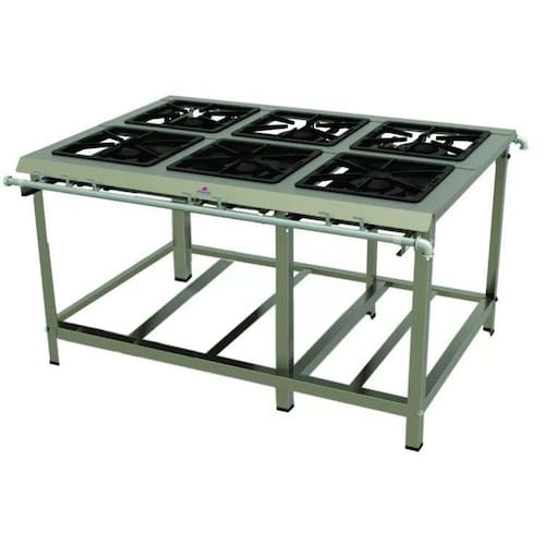 - 6 queimadores duplos em material fundido de 200 mm de diâmetro;