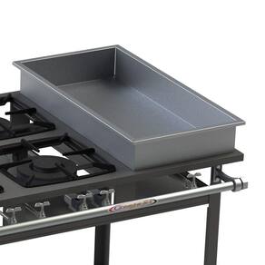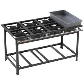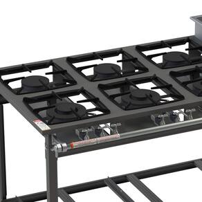 As grelhas são confeccionadas em ferro fundido no tamanho 30x30. O produto apresenta tubo coletor de gás pintado e bandeja coletora de resíduos.