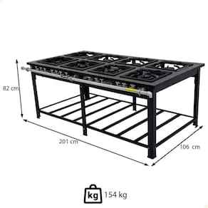 DESCRIÇÃO - O Fogão Industrial Maxi 8 Queimadores Duplo Venâncio é a escolha perfeita para quem busca desempenho e praticidade em cozinhas profissionais. - Com gás GLP de baixa pressão, seus queimadores de ferro fundido oferecem alta potência de até 5.586 kcal/h, com controle individual das chamas no modelo duplo. - O design desmontável facilita o transporte e a armazenagem, enquanto a mesa de aço carbono com acabamento em pintura eletrostática garante resistência e durabilidade. - Ideal para uso industrial, o equipamento também conta com bandeja coletora em aço galvanizado e grela de ferro fundido, oferecendo manutenção e limpeza facilitadas.