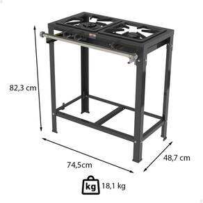 - Com 1 boca dupla e 1 boca simples, ele oferece controle total da chama, ideal para cozinhas que exigem rapidez e eficiência.