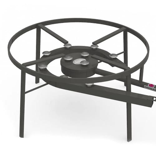 Informações Técnicas: - Modelo: F2B10 - Sistema de gás alta pressão - Queimador duplo - Estrutura em aço e acabamento em pintura epóxi na cor preta - 10 Caulins redondos para uso - Kit gás 1/4 montado - Peso: 2,8 kg
