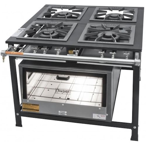 Fogão Industrial Tradicional 40x40 4 Bocas Com Forno Itajobi Fogão Baixa Pressão 40x40 Fogão Industrial Tradicional 40x40 Baixa Pressão 4 Bocas com Forno Itajobi. Ideal para cozinhas, restaurantes, bares e similares. Confeccionado em chapa aço inox 430. Possui 4 bocas de baixa pressão, sendo: 2 queimadores simples e 2 queimadores duplos, fabricados em ferro fundido. Tubo coletor de gás zincado e bandeja coletora de resíduos. CONSUMO DE GÁS QUEIMADOR SIMPLES: 0,200kg/hr. CONSUMO DE GÁS QUEIMADOR DUPLO: 0,360kg/hr. DIMENSÕES(CxAxL): 106x80x111cm. CAPACIDADE DO FORNO: 87 Litros. Fogão Industrial Tradicional 40x40 Baixa Pressão 4 Bocas com Forno Itajobi é na Atau. Tamanho - 4 Bocas Modelo - 40x40 Com Forno
