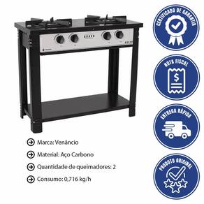 O Fogão Industrial Venâncio Bravo BR2VB possui 2 queimadores com chama tripla e uma potência de 3021 Kcal/h, proporcionando cozimento rápido e uniforme. Cada grelha suporta até 10 kg de carga.
