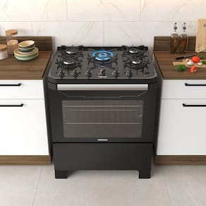 Potencia e Rapidez no Cozimento: robusto queimador tripla chama para agilizar o preparo de suas receitas. (versao 5Q).