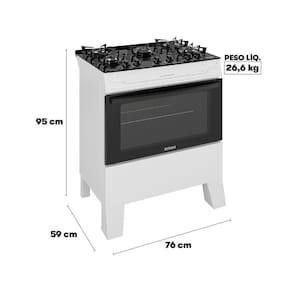 Projetado para utilização com gás GLP, o modelo possui construção em chapa pintada na cor branco fosco, entregando durabilidade e estilo neutro que se adapta facilmente a diferentes ambientes.