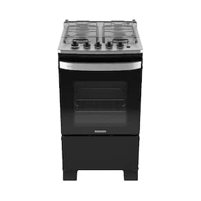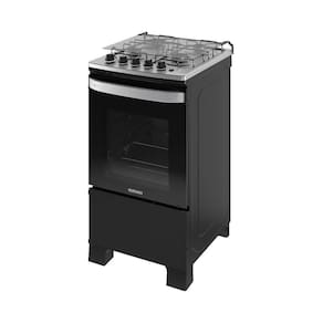 O forno é projetado para oferecer praticidade e segurança, com um sistema de prateleiras composto por uma unidade fixa e uma deslizante, além de iluminação interna para melhor visualização. O controle de temperatura é preciso, variando de 180C a 270C, enquanto o puxador em alumínio escovado e as grades duplas de aço reforçado garantem durabilidade. Para facilitar a rotina de manutenção, o modelo conta com manípulos removíveis e tecnologia limpa fácil no revestimento interno. Versátil, o equipamento é bivolt e compatível com gás GLP e GN.