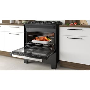 - Puxador em alumínio escovado com design robusto para maior segurança e conforto ao abrir a porta do forno.