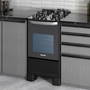 Fogão Master Grill 4 Queimadores Preto Suggar 127 V Descrição VANTAGENS DO PRODUTO Acendimento superautomático na mesa e no forno Ajuste de temperatura do forno Forno Fácil Limpeza Grill no forno Mesa de vidro temperado curva Trempes em ferro fundido com 6 apoios Queimador tripla chama Porta espelhada Capacidade forno: 56L Luz no forno - a lâmpada não acompanha o produto Controle de temperatura do forno 180C a 280C Pés elevados que facilitam a limpeza do piso Botões top control Queimadores injetados Forno com válvula de Dobradiças italianas: amortecem o fechamento da porta Proteção térmica com vidro duplo no forno 1 grade fixa e 1 grade deslizante com 3 níveis de ajuste no forno Puxador com design curvo em alumínio escovado (BR e PT) Puxador com design curvo pintado na cor prata (PRIX) Ver mais detalhes MEDIDAS DO PRODUTO ProdutoCom embalagem Altura 92,0 Largura 49,5 Profundidade 66,3 Peso 25,5 ESPECIFICAÇÕES TÉCNICAS Nome do produto: Fogão Master Grill 4 Queimadores Cor: Preto Modelo 127V: FGVMTG411PT Código EAN 127V: Modelo 220V: FGVMTG412PT Código EAN 220V: Qtd. pçs. caixa: 1