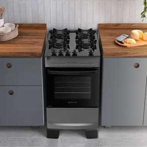 A mesa em vidro temperado traz um visual moderno que valoriza a cozinha, alem de proporcionar maior facilidade na limpeza do dia a dia. Seu acabamento liso evita o acumulo de sujeira, permitindo uma higienizacao rapida apos o uso. As trempes individuais de aco com acabamento limpa facil garantem boa estabilidade para as panelas e tambem contribuem para a manutencao pratica do fogao.