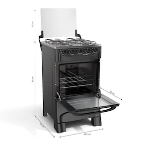 Peso (Kg): 16 | Largura (cm): Largura (cm) | Cor: Preto Fosco | Tipo de acendimento: Manual | Mesa: Aço Inox | Altura (cm): 87cm | Marca: Mueller | Voltagem: Sem voltagem | Queimadores: Esmaltado em Easy clean | de bocas: 4 Bocas | Prateleiras do forno: Uma grade ajustável em dois níveis de altura | Porta do forno: De vidro | modelo: Fogão 4 Bocas Branco MFI4BA | Tipo de Fogão: A Gás, de Piso