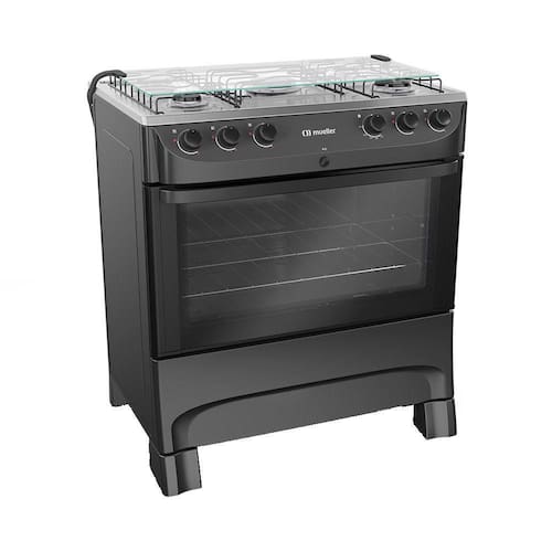 Fogão Mueller 5 Bocas MFI5BB Automático Mesa de Inox Forno 81,6 Litros