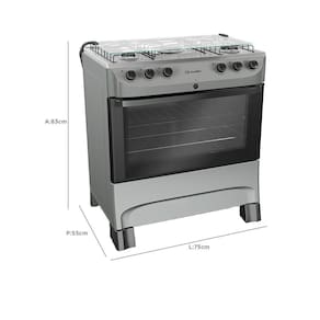Fogão Mueller 5 Bocas MFI5BB Automático Mesa de Inox Forno 81,6 Litros