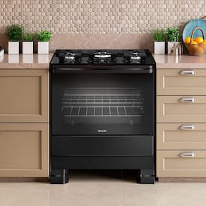 Descubra a beleza e as vantagens do novo fogão Mueller 5 bocas preto com mesa de vidro MFV5BF. Com seu design moderno e funcional, ele torna sua rotina muito mais prática. A mesa ampla em vidro temperado traz o queimador central tripla chama para receitas prontas num instante, e as grades de ferro fundido exclusivas da Mueller proporcionam panelas firmes em todas as suas receitas. Tenha o novo fogão Mueller MFV5BF e vivencie uma nova experiência na sua cozinha.