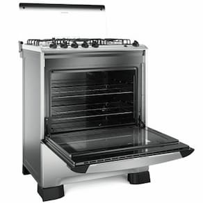 Sao cinco bocas com acendimento automatico, dentre elas se destaca o queimador tripla chama com 3.700 W de potencia. Alem disso, o modelo conta com mesa inox, tampa de vidro, botoes removiveis e acabamento total clean. Dessa forma, a utilizacao e limpeza do produto fica mais intuitiva, e voce tem mais tempo para saborear aquele prato todo especial.