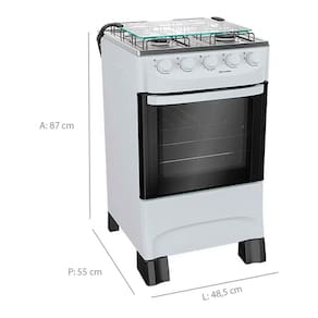 Potência dos queimadores: Queimador Família: 2000W | Queimador Médio: 1700W | Queimador do forno: 1900W