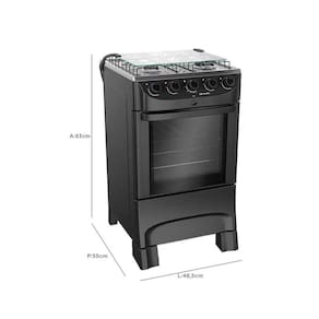 Forno Com uma capacidade de 48,1 litros o forno possui acendimento automático e tecnologia Total Clean para facilitar a limpeza e um visor amplo para melhor acompanhar o preparo do prato. as grades são ajustáveis com dois níveis de altura. O forno possui ainda um sistema com válvula de segurança que corta a saída de gás caso as chamas se apaguem acidentalmente, evitando acidentes e garantindo mais segurança em sua casa.