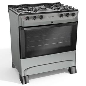 Altura (cm): 86cm | Cor: Titânio | Mesa: Aço Inox | Tampa: Tampa de vidro temperado | Voltagem: Bivolt | Tipo de acendimento: Acendimento automático total, na mesa e no forno | Queimadores: Esmaltado em Easy clean | Peso (Kg): 22,2Kg | Tipo de Fogão: A Gás, de Piso | Largura (cm): 75cm | Porta do forno: De vidro | Prateleiras do forno: Uma grade ajustável em dois níveis de altura