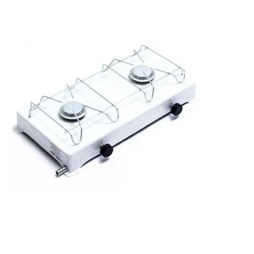 Fogão a Gás Fogareiro 2 bocas para Camping Portátil branco - Para uso com botijão de gás com regulador de baixa pressão. Fácil de usar, limpar e transportar.