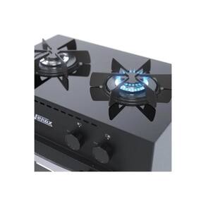 Fogão portátil 2 bocas Venax Gemini Vetro, mesa em inox com Respaldo, forno Easy Clean com 22 litros, puxador cromado, temperatura com 3 posições.Tipo