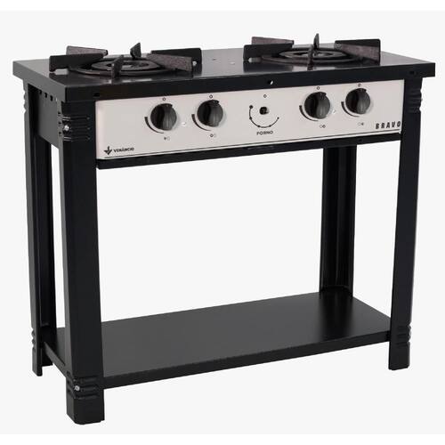 O Fogão Industrial Bravo conta com 2 bocas e mesa esmaltada a fogo com sistema Easy Clean, facilitando a limpeza. Conta com sistema de gás GLP de baixa pressão e queimadores de alto rendimento fabricados em ferro fundido, possuindo potência de 3.636 kcal/h e consumo de gás de 0,662kg/h