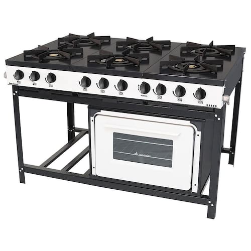 O Fogão Industrial Venâncio 6 Bocas Com Forno além de todas as bocas serem duplas, esse fogão possui 3 bocas com sistema 3 chamas, sendo as bocas mais rápidas do fogão industrial.