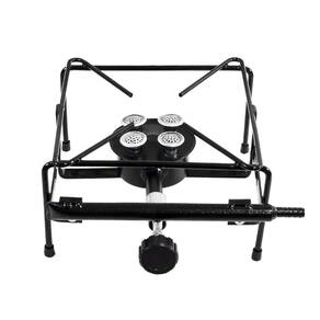 marca: roa linha: esqueleto cor: preto material: ferro esmaltado quantidade de bocas: 01 boca com 4 caulins de alta pressão funcionamento: gás glp com registro mangueira normalizada