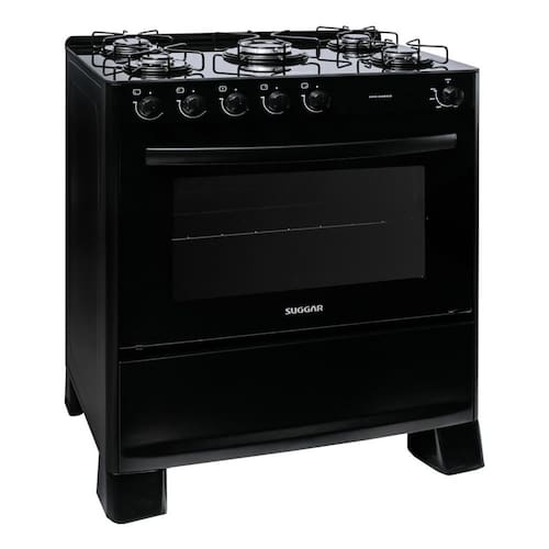 Caracteristicas: Marca: Suggar Linha: FGVCGE Quantidade de Bocas: 5 bocas Trempes: Em aco esmaltado Mais potencia com 1 queimadores familia central Tipo de Acendimento: Manual Acabamento da Mesa: Vidro Temperado Instalacao: Fogao de Piso Funcionamento: Gas Capacidade do Forno: 90 Litros Controle de temperatura do forno: 180C a 280C graus Vidro do Forno: Vidro Duplo Grades do Forno: 1 Grade Grade do forno ajustavel: Sim 3 Niveis