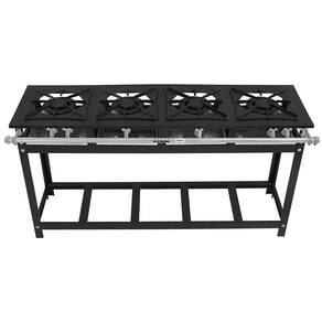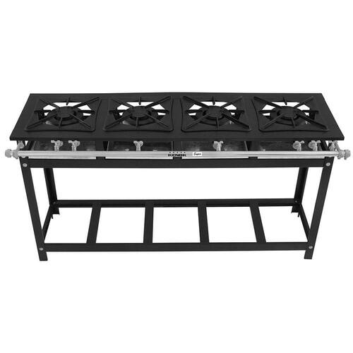 O fogão 4 bocas industrial em linha é a melhor escolha para quem precisa de um fogão potente e de alta performance em sua cozinha industrial e profissional. Pode ser utilizado em restaurantes, lanchonetes, padarias, espaços de festa, chácaras, sítios, acampamentos e muitos outros locais que necessitem de um equipamento eficiente para cozinhar e preparar os alimentos. Este fogão industrial a gás é confeccionado em formato linha e aço carbono (chapa 20) com pintura epóxi, garantindo muito mais qualidade e durabilidade ao produto. Sua grelha 40x40 é feita em ferro fundido, proporcionando máxima resistência, além de possibilitar o uso de recipientes a partir de 110 mm. Conta com 4 queimadores duplos e uma bandeja coletora de resíduos em cada queimador, para melhor utilização e higiene do fogão 4 bocas.