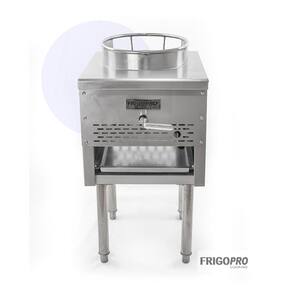 A linha de fogões wok FRIGOPRO COOKING apresentam uma construção durável em aço inoxidável com 4 pernas ajustáveis. O acessório do fogão wok em aço inoxidável maximiza a eficiência e a higiene com sua borda frontal enrolada e design de inclinação gradual. A unidade possue uma prática luz piloto permanente, tornando-as prontas para a ignição instantânea. O modelo 351WOKR13N/L apresenta um poderoso queimador de jato de pato com 18 pontas e 95.000 BTUs de potência de cozimento.