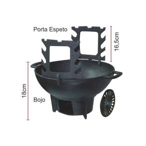 Fogareiro/Churrasqueira Gengiskan completo com chapéu chinês, chapa lisa, chapa grelhada e dois porta espetos, confeccionado em ferro fundido de alta qualidade, diâmetro 31cm. O fogareiro/churrasqueira Gengiskan tem o tamanho compacto, proporcionando ao seu churrasco mais conforto, economia e rapidez. Os produtos de ferro fundido tem como principal característica passar um pouco do ferro para os alimentos, garantindo sua necessidade do mineral para ter uma vida mais saudável. Os utensílios fabricados em ferro fundido além da praticidade, também apresentam boa durabilidade, preço baixo e, segundo especialistas, seu uso regular pode reduzir o risco de anemia e deficiência de ferro.