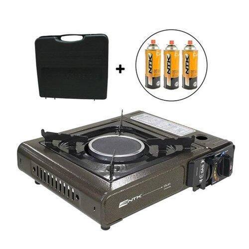 Fogareiro Duo Ceramik Nautika Camping Com 3 Cartuchos De Gás Campgás 220g Fogareiro Duo Ceramik Nautika Camping Com 3 Cartuchos De Gás Campgás 220gUm dos modelos Flex Fuel da Nautika, o Fogareiro Duo Ceramik é ideal para uso em casa ou para uso em camping. É todo feito em aço esmaltado com epóxi e de fácil instalação e utilização.O Fogareiro Duo Ceramik vem com um apoio de panela removível, o que facilita a limpeza após o uso. Para acender, nada de fósforos: você utiliza o sistema piezo de ignição automático, garantindo mais segurança e praticidade para o uso.Ao acender, você pode regular a chama para não gastar mais gás do que o necessário. E queimador em cerâmica para maior comodidade.Para facilitar ainda mais, o modelo é Flex Fuel, ou seja, aceita tanto o GPL gás de cozinha quanto o Campgás como combustível. Para usar o gás tradicional, é preciso acionar a trava de segurança, que controla a saída de gás.O Fogareiro Duo Ceramik vem também com uma prática maleta de transporte para você armazená-lo e carregá-lo com segurança.Informações gerais: Material: Aço esmaltado com epóxi especial e base revestida com enamel atóxico queimador em cerâmica Tipo de cartucho: Cartucho de gás Campgás ou botijão tradicional Consumo de gás: 145g/hMedidas:35cm C 10cm A 33cm L Peso: 2,2kgMarca: NTK