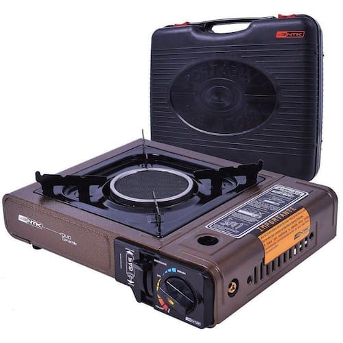 Informações gerais: Material: Aço esmaltado com epóxi especial e base revestida com enamel atóxico queimador em cerâmica Tipo de cartucho: Cartucho de gás Campgás ou botijão tradicional Consumo de gás: 145g/h Comprimento da embalagem: 35 cm Altura da embalagem: 10 cm Largura da embalagem: 33 cm Marca: NTK