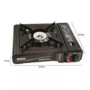 O Fogareiro Camping vem com um apoio de panela removível, o que facilita a limpeza após o uso. Para acender, nada de fósforos: você utiliza o sistema piezo de ignição automático, garantindo mais segurança e praticidade para o uso.