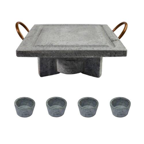 Fogareiro G Chapa Quadrada 25x25cm e Molheiras Pedra Sabão