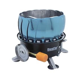O Fogareiro Portátil Para-Brisa Bestfer é ideal para cozinhar no Camping ou Viagem, ocupando pouco espaço e volume.