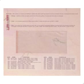 Folder Encarte para Cédula de 10 Reais DescritivoO Folder Encarte para Cédula de 10 Reais Descritivo descreve com detalhes os vários elementos que compõem a cédula de 10 reais da primeira família, além de apresentar as cores reais dessa cédula.No folder são apontados os elementos de impressão em alto-relevo, fibras coloridas, fundos especiais, microimpressões, microchancelas, imagem latente, marca tátil, registro coincidente, fibras luminescentes, fio de segurança, numeração, dimensões, listagem com informações de chancelas entre 1994 a 2010 e descrição do anverso e reverso.O folder tem espaço reservado para colocar 1 (um) cédula de 10 reais da 1ª Família em 1 (um) espaço plástico que é localizada na parte interna do material; a abertura do plástico é feita pela lateral esquerda dele. Para colocar sua cédula você deve abrir o plástico pelo lado citado e inserir a cédula com cuidado.CARACTERÍSTICAS DO FOLDERComprimento: 19,7cmLargura folder fechado: 22,5cmEspaço para 1 cédula de 10 reais da 1ª FamíliaNÃO ACOMPANHA CÉDULA Marca: Numismática Completei