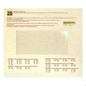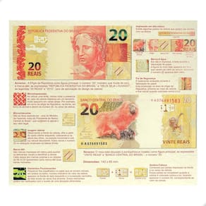 Folder Encarte para Cédula de 20 Reais Descritivo 2ª FamíliaO Folder Encarte para Cédula de 20 Reais Descritivo 2ª Família descreve com detalhes os vários elementos que compõem a cédula de 20 reais da segunda família, além de apresentar as cores reais dessa cédula.No folder são apontados os elementos de impressão em alto-relevo, marca-d'água, fio de segurança, microimpressões, microchancelas, imagem latente, marca tátil, elementos fluorecentes, quebra-cabeça, numeração, dimensões, listagem com informações de chancelas e descrição do anverso e reverso.O folder tem espaço reservado para colocar 1 (um) cédula de 20 reais da 2ª Família em 1 (um) espaço plástico que é localizada na parte interna do material; a abertura do plástico é feita pela lateral esquerda dele. Para colocar sua cédula você deve abrir o plástico pelo lado esquerdo e inserir a cédula com cuidado.CARACTERÍSTICAS DO FOLDERComprimento: 19,7cmLargura folder fechado: 22,5cmEspaço para 1 cédula de 20 reais da 2ª FamíliaNÃO ACOMPANHA CÉDULA Marca: Numismática Completei