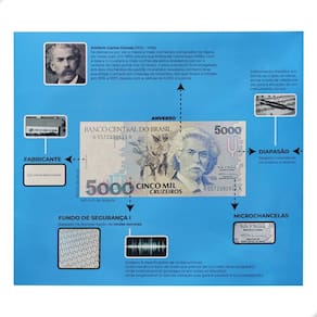 Folder Encarte para Cédula de 5000 Cruzeiros 1990 - 1993O Folder Encarte para Cédula de 5000 Cruzeiros 1990 - 1993 descreve com detalhes os vários elementos que compõem a cédula de 5000 reais do período de 1990 a 1993, além de apresentar as cores reais dessa cédula.No folder são apontados algumas informações, entre elas sobre Carlos Gomes.O folder tem espaço reservado para colocar 1 (um) cédula de 5000 Cruzeiros em 1 (um) espaço plástico que é localizada na parte interna do material; a abertura do plástico é feita pela lateral esquerda dele. Para colocar sua cédula você deve abrir o plástico pelo lado citado e inserir a cédula com cuidado.CARACTERÍSTICAS DO FOLDERComprimento: 19,7cmLargura folder fechado: 22,5cmEspaço para 1 cédula de 5000 Cruzeiros entre 1990 a 1993NÃO ACOMPANHA CÉDULA Marca: Numismática Completei