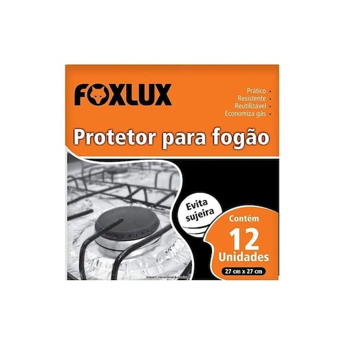 CARACTERÍSTICAS TÉCNICAS FOXLUX: - Medidas: 27 x 27 centímetros. - Quantidade: kit com 12 unidades. - Material resistente que suporta altas temperaturas. - Auxilia na manutenção uniforme do calor durante o cozimento. - Design compatível para diversos modelos de fogões padrão.