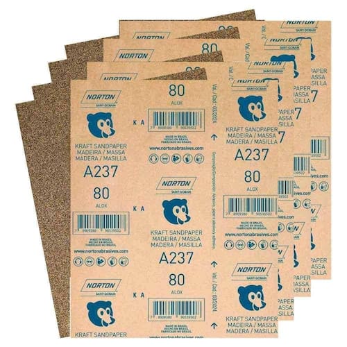 Folha de Lixa Massa Madeira Grão 80 com 50 Unidades NORTON