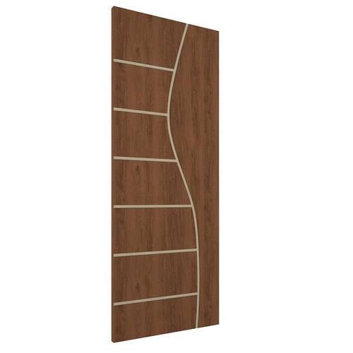 Imagine uma porta que une a beleza clássica da madeira com a praticidade e a uniformidade do MDF, finalizada com um verniz elegante que realça seus detalhes e oferece proteção duradoura, e com um enchimento inteligente que a torna mais leve sem comprometer a sua estrutura.