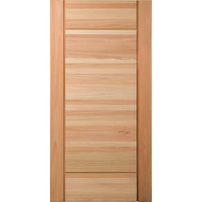 A Folha de Porta de Giro Clean Eucalipto 210x102cm Marroml da Cruzeiro possui design com duas linhas verticais na borda e diversas linhas horizontais ao longo do corpo. É produzida em madeira Eucalipto tipo Grandis 100% Reflorestada.